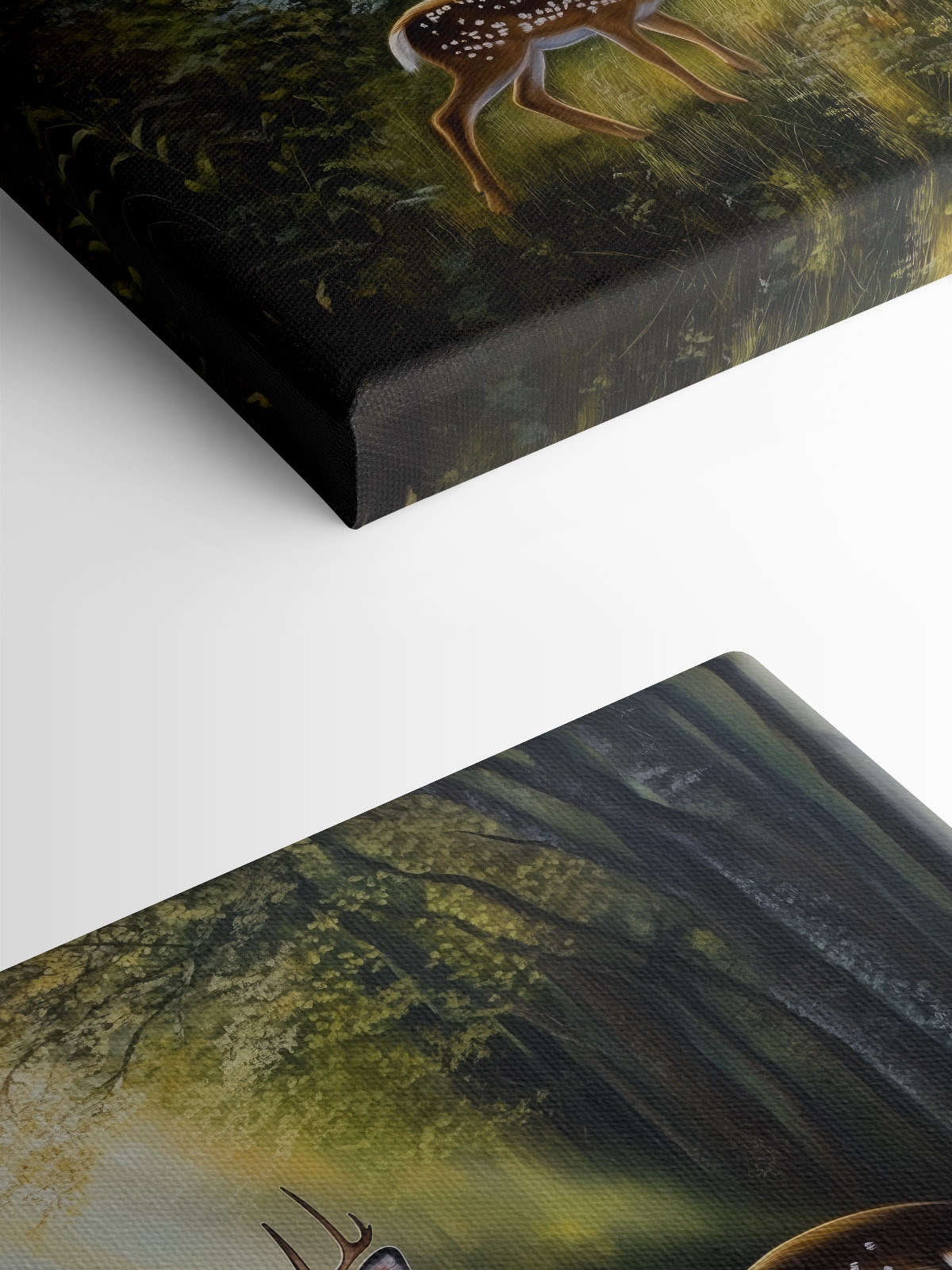 Transformez votre espace avec cette impression sur toile enchanteresse, “Cerfs dans les bois”. Imaginez maintenant : deux cerfs gracieux se tenant dans une forêt ensoleillée, invitant un sentiment de calme et d’inspiration dans votre maison. Cette œuvre capture la beauté tranquille de la nature, ce qui la rend parfaite pour toute pièce qui a besoin d’une touche de sérénité.