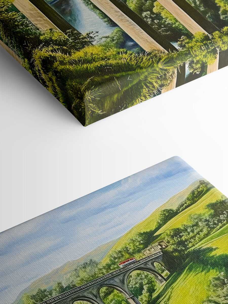 Imaginez un train filant sur un pont gracieux, niché entre des collines luxuriantes et une rivière sinueuse. Cette impression sur toile fait entrer cette scène enchanteresse dans votre espace. Les verts vifs, les bleus doux et les arches majestueuses créent une ambiance à la fois apaisante et stimulante, parfaite pour n’importe quelle pièce. Imaginez-vous en train de siroter un café tout en contemplant ce chef-d’œuvre, un petit rêve éveillé sur votre mur. Elle invite à la chaleur et à l’aventure, rappelant à tous que les voyages et la nature sont des lieux de beauté. Et puis, elle suscitera de grandes conversations, peut-être même un voyage spontané en voiture. Qui n’en voudrait pas ?