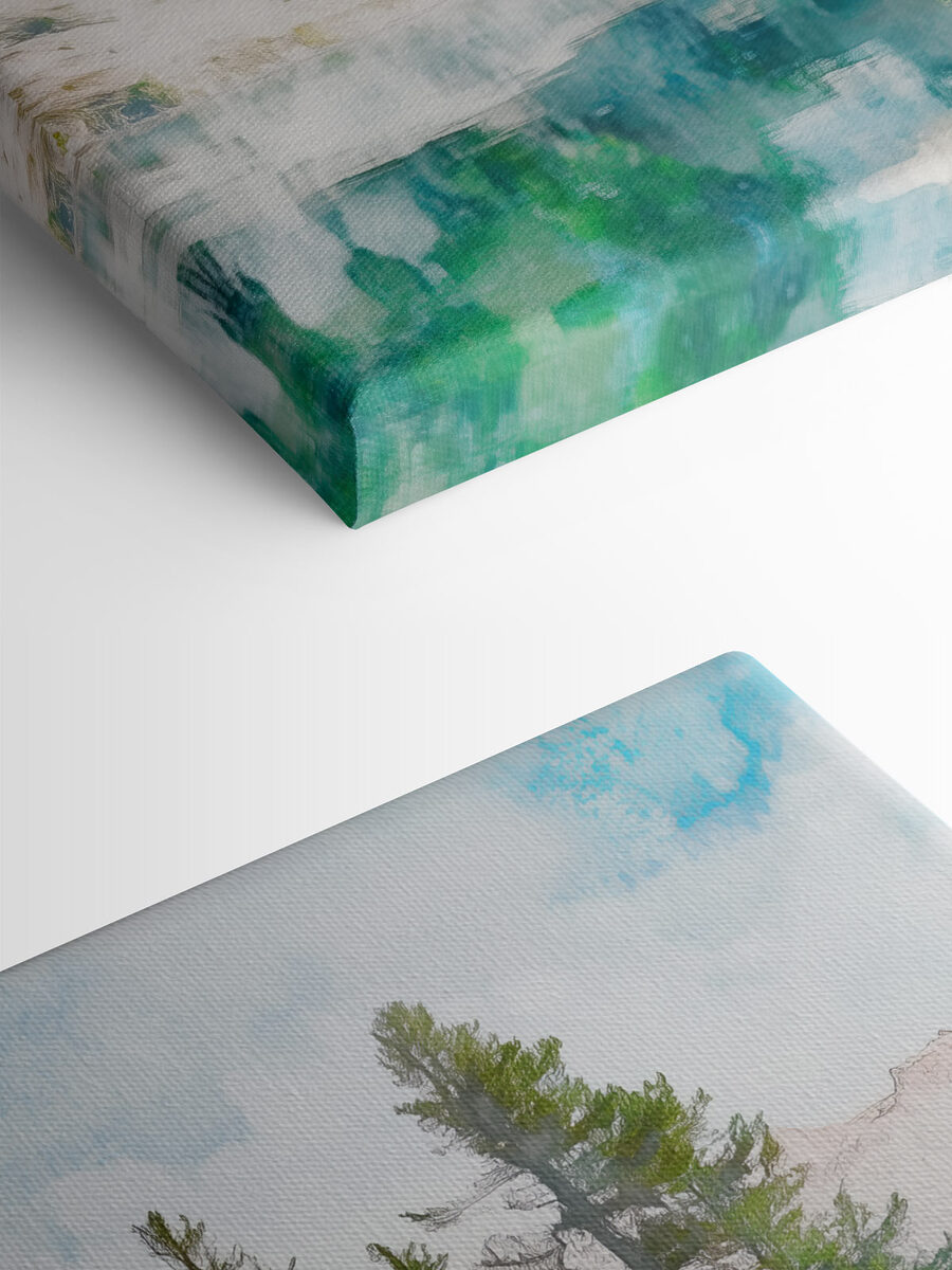 Imaginez que vous entrez dans un monde de sérénité à chaque fois que vous regardez cette impression sur toile. Cette œuvre d’art apporte une ambiance calme et rêveuse à n’importe quel espace, mettant en scène une eau tranquille reflétant de grands arbres et des montagnes majestueuses. C’est comme une tasse de tisane parfaite lors d’un après-midi paresseux. Les teintes douces et les coups de pinceau invitent à la rêverie, qu’il s’agisse d’un coin lecture confortable ou d’un salon accueillant. Les amis pourraient même se surprendre à se pencher de plus près, se perdant dans les couches de couleurs. Parfait pour ceux qui souhaitent profiter des murmures paisibles de la nature sans quitter leur domicile. Une belle déclaration, n’est-ce pas ?