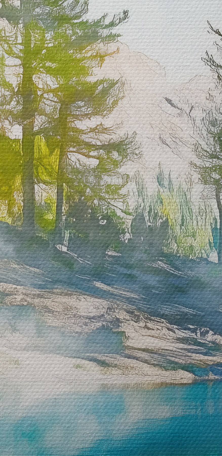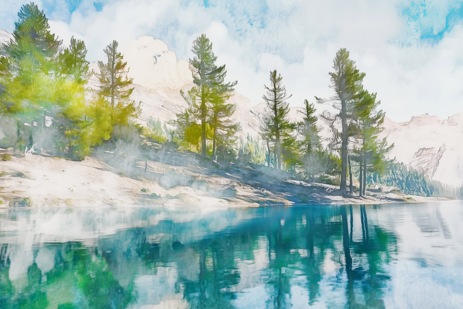 Imaginez que vous entrez dans un monde de sérénité à chaque fois que vous regardez cette impression sur toile. Cette œuvre d’art apporte une ambiance calme et rêveuse à n’importe quel espace, mettant en scène une eau tranquille reflétant de grands arbres et des montagnes majestueuses. C’est comme une tasse de tisane parfaite lors d’un après-midi paresseux. Les teintes douces et les coups de pinceau invitent à la rêverie, qu’il s’agisse d’un coin lecture confortable ou d’un salon accueillant. Les amis pourraient même se surprendre à se pencher de plus près, se perdant dans les couches de couleurs. Parfait pour ceux qui souhaitent profiter des murmures paisibles de la nature sans quitter leur domicile. Une belle déclaration, n’est-ce pas ?