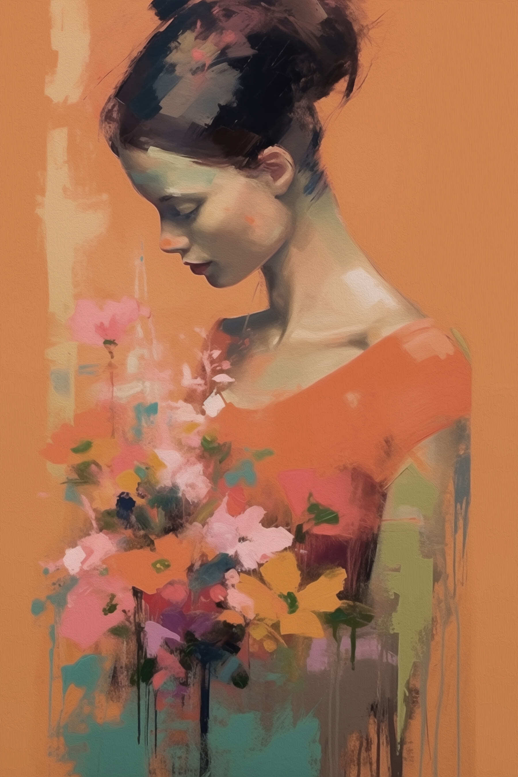 Cette captivante impression sur toile représente une femme tenant délicatement un bouquet de fleurs, dégageant une atmosphère à la fois sereine et joyeuse. Les couleurs chaudes évoquent un sentiment de calme, ce qui en fait un endroit parfait pour la rêverie. Imaginez que vous entrez dans une pièce et que vous êtes accueilli par cette jolie pièce, qui transforme instantanément l’espace. C’est comme un doux rappel de s’arrêter et de sentir les fleurs, même si ce n’est qu’en esprit. Idéale pour un coin douillet ou un mur d’exposition branché, cette œuvre d’art ajoute une touche de joie où qu’elle soit accrochée. Elle ne manquera pas de faire sourire les invités et d’alimenter les conversations.
