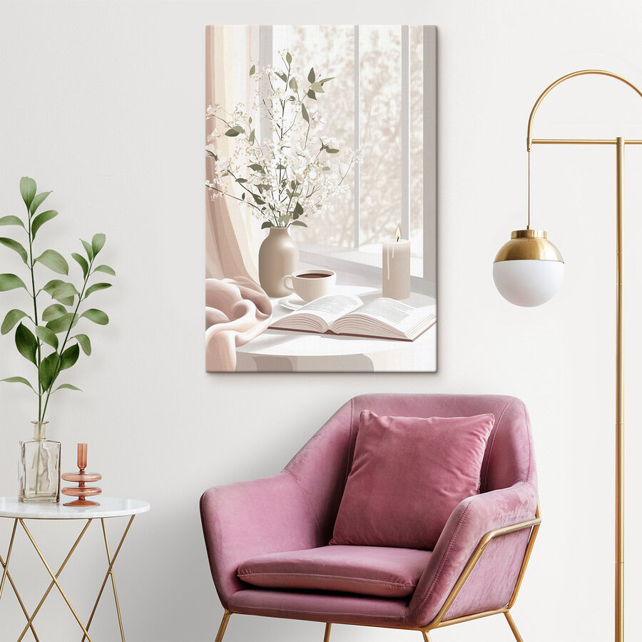 Transformez n’importe quel coin de votre maison avec cette charmante impression sur toile représentant une tasse de café confortable et un délicat vase de fleurs perché sur un rebord de fenêtre ensoleillé. Cette œuvre d’art a une ambiance sereine, parfaite pour créer une retraite calme. Imaginez-vous en train de vous blottir dans un bon livre, en sirotant votre boisson préférée, alors que le soleil filtre à travers ces doux rideaux. Le design minimaliste apporte une touche de nature, vous donnant l’impression de vivre dans un café de rêve ou un coin de jardin paisible. Idéale pour se détendre ou susciter la joie, cette pièce est comme une étreinte chaleureuse pour vos murs.