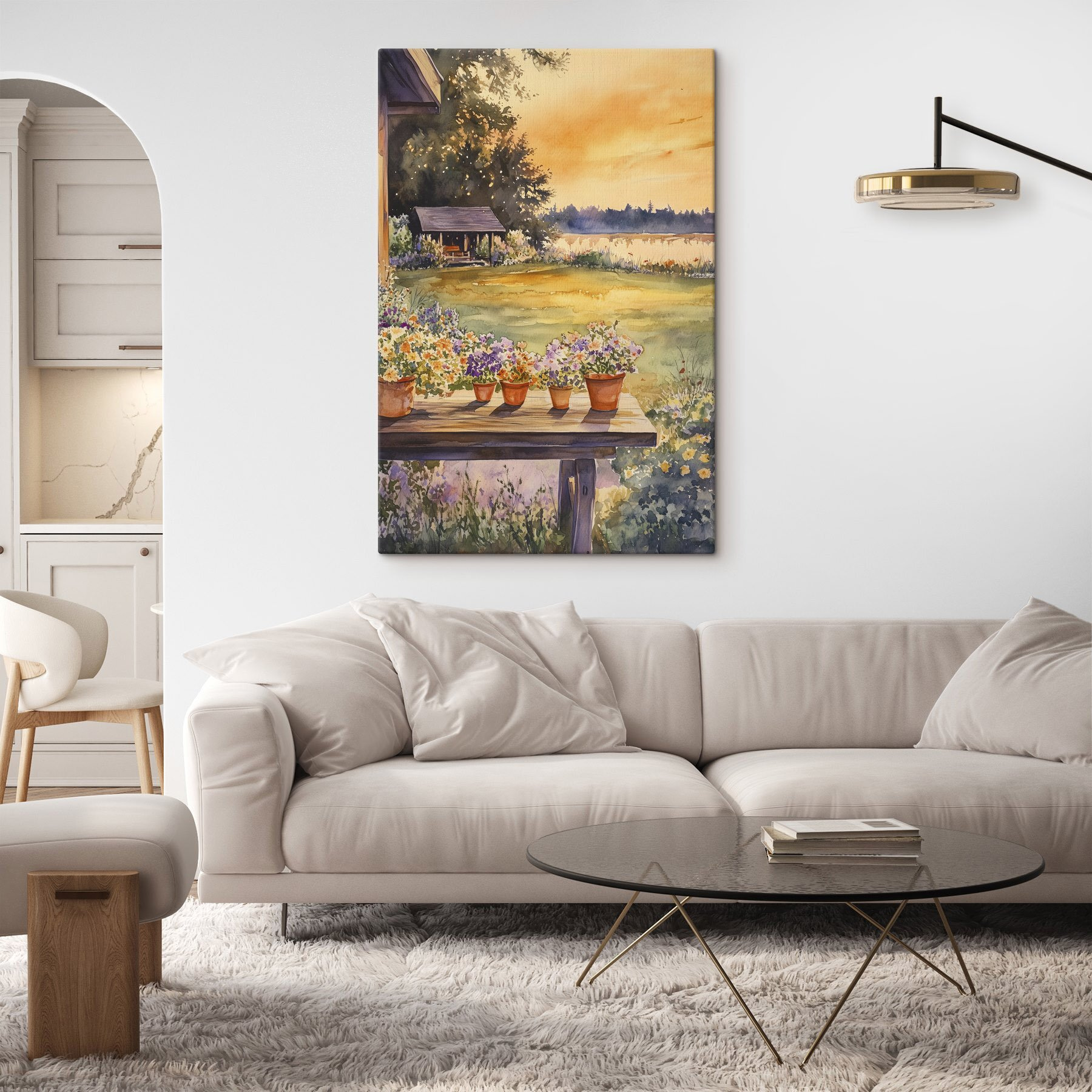 Transformez un mur en un lieu d’évasion accueillant grâce à cette aquarelle enchanteresse représentant un porche orné de fleurs en pot vibrantes. Imaginez : un doux coucher de soleil qui donne des teintes chaudes pendant que vous sirotez votre boisson préférée, en sentant la douce brise. Les couleurs vives des fleurs évoquent des sourires et suscitent des conversations, ce qui en fait un ajout charmant pour les coins douillets ou pour égayer un coin moins excitant. Imaginez vos invités se promenant, admirant cette scène sereine, perdus dans leurs pensées de chaudes soirées d’été. Ce n’est pas seulement un décor, c’est un petit coin de bonheur.