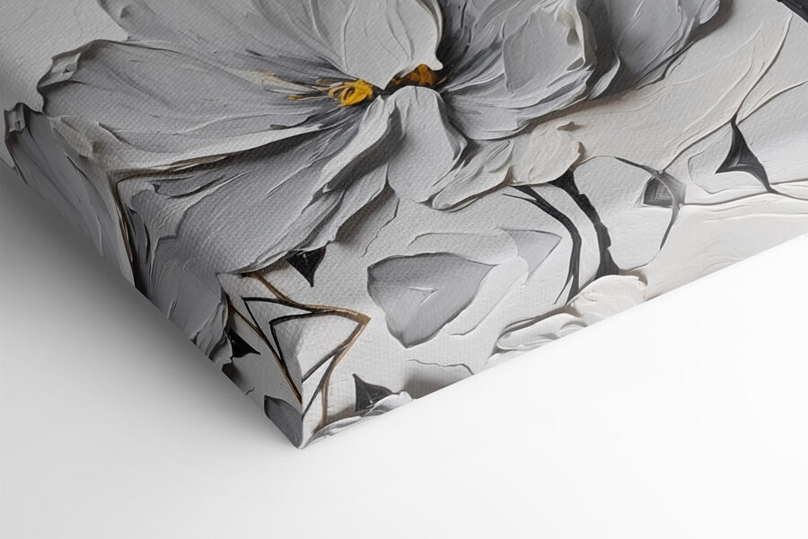 Egayez n’importe quel coin avec cette jolie toile imprimée représentant de gracieuses fleurs éclaboussant une douce toile de fond blanche. C’est comme si vous apportiez un jardin à l’intérieur, les allergies en moins ! Les teintes douces s’harmonisent parfaitement, créant une ambiance calme qui fait du bien. Imaginez-vous en train de siroter un café et de perdre la notion du temps en contemplant ces pétales luxuriants. Parfaite pour un salon ou un coin lecture confortable, cette pièce évoque l’élégance et la chaleur. De plus, elle alimente les conversations – vos amis se demanderont si vous venez de passer des vacances florales ! Une petite tranche de nature, directement sur votre mur.