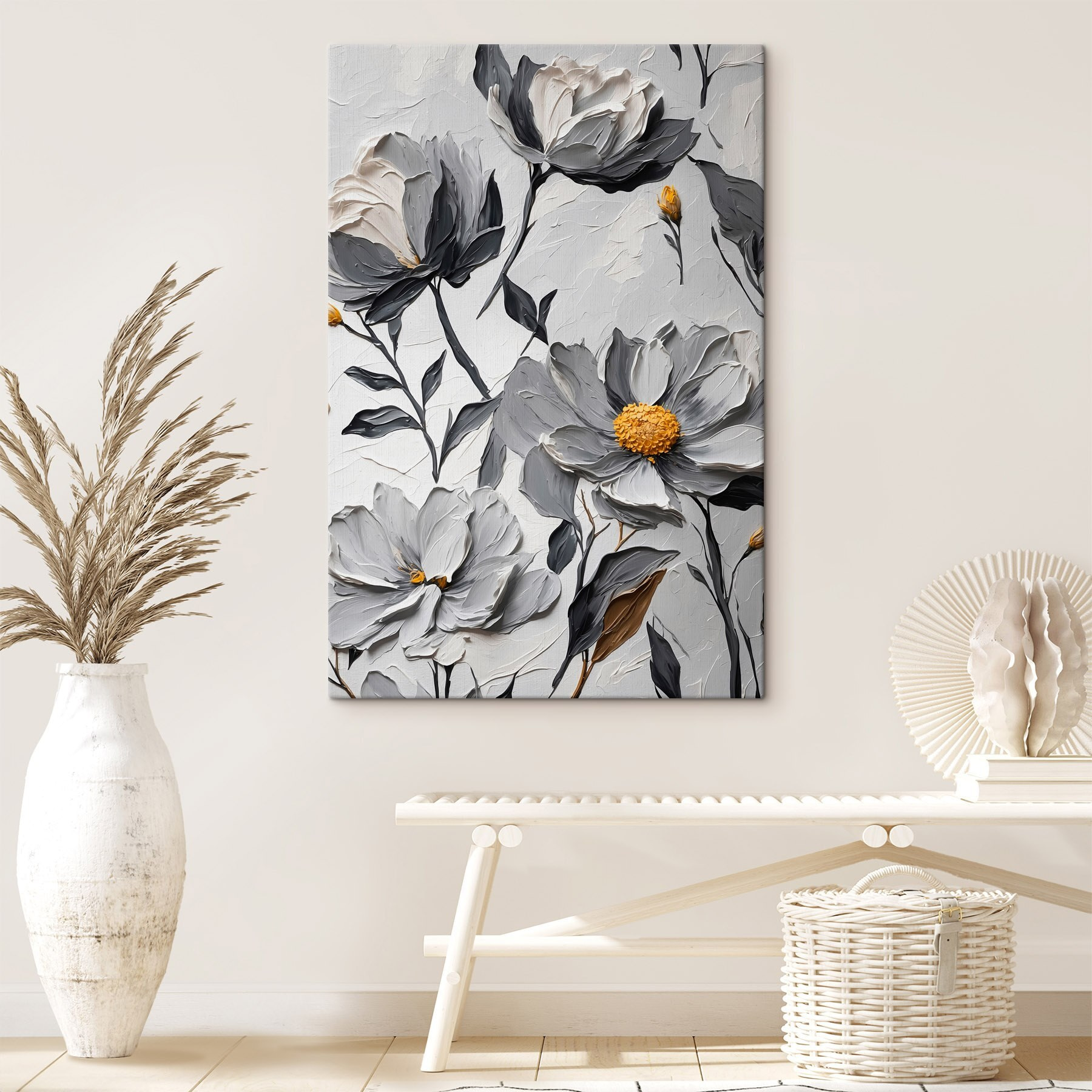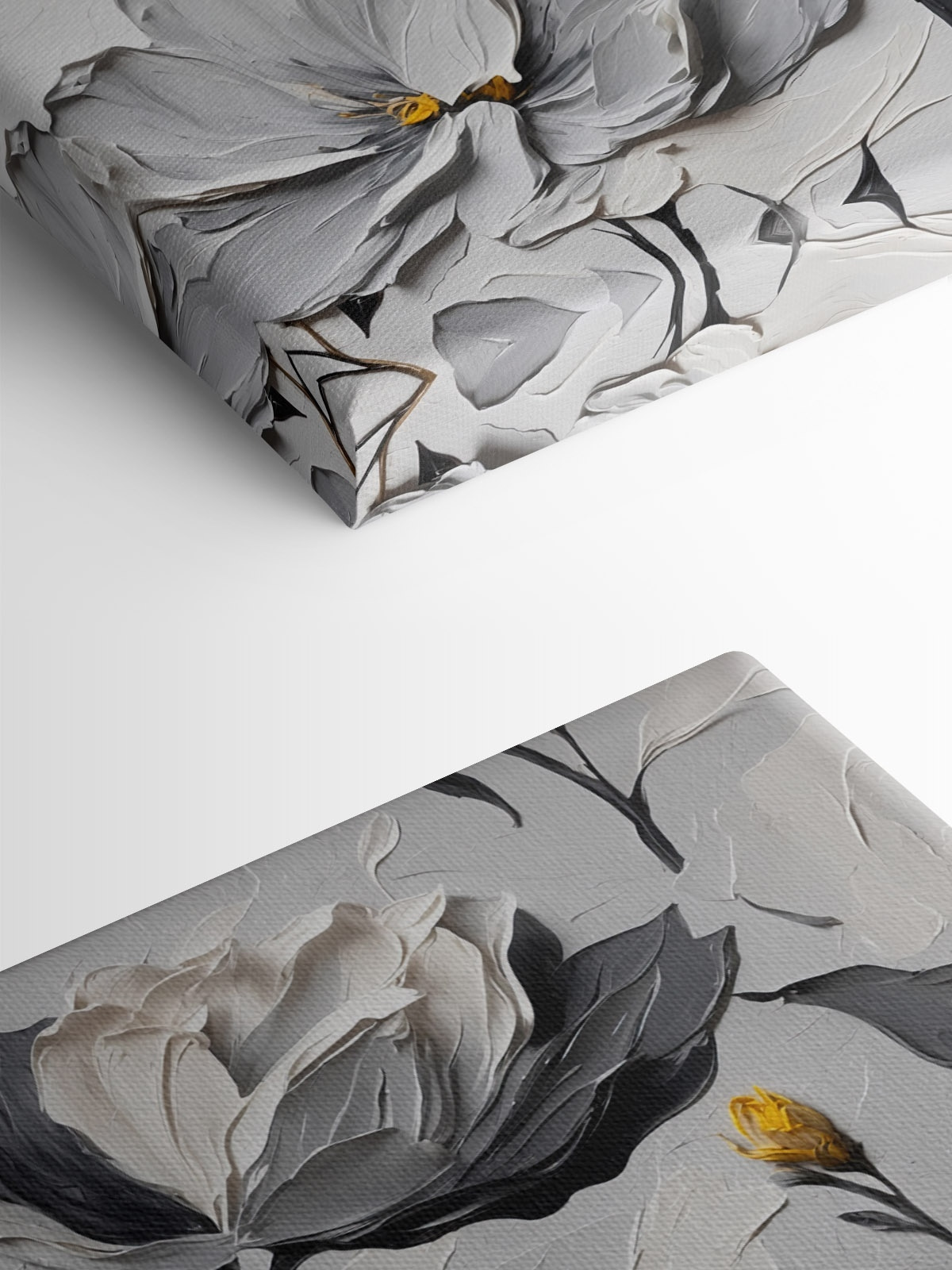 Egayez n’importe quel coin avec cette jolie toile imprimée représentant de gracieuses fleurs éclaboussant une douce toile de fond blanche. C’est comme si vous apportiez un jardin à l’intérieur, les allergies en moins ! Les teintes douces s’harmonisent parfaitement, créant une ambiance calme qui fait du bien. Imaginez-vous en train de siroter un café et de perdre la notion du temps en contemplant ces pétales luxuriants. Parfaite pour un salon ou un coin lecture confortable, cette pièce évoque l’élégance et la chaleur. De plus, elle alimente les conversations – vos amis se demanderont si vous venez de passer des vacances florales ! Une petite tranche de nature, directement sur votre mur.