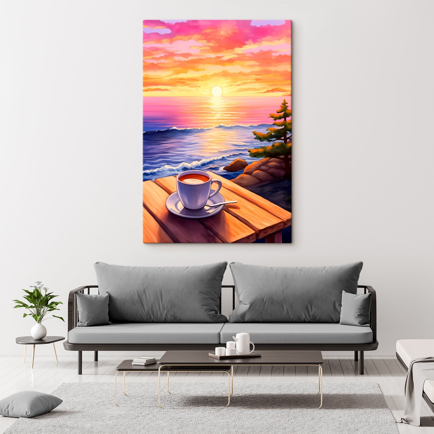 Imaginez que vous vous retrouvez avec votre boisson chaude préférée, les douces vagues qui roulent à proximité et un coucher de soleil tout droit sorti d’un rêve. Cette impression sur toile capture ce moment parfait – un café sur une table, tandis que le soleil plonge dans une mer scintillante. Ce n’est pas seulement de l’art, c’est une évasion. En la regardant, vous sentirez peut-être cette chaleur apaisante vous envahir, et toute journée stressante vous semblera alors bien loin. Parfaite pour un coin douillet ou un salon animé, cette pièce invite au calme et à la joie, transformant n’importe quel mur en un doux rappel des plaisirs simples de la vie. Après tout, qui ne voudrait pas d’une petite tranche de tranquillité à la maison ?