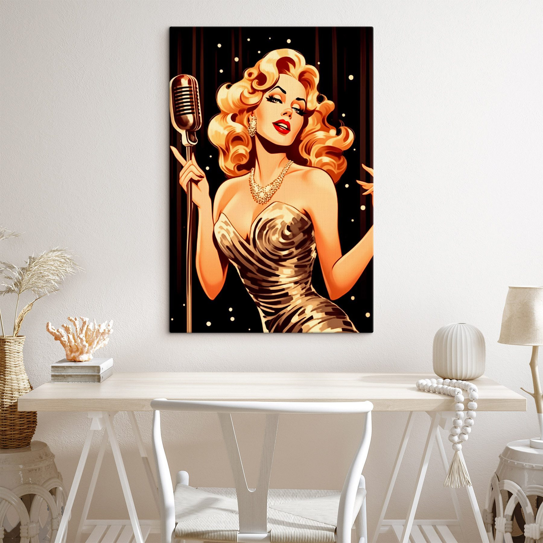 Respirez l’ambiance d’un club de jazz enfumé depuis votre salon. Cette impression sur toile, représentant une femme glamour chantant un air dans un microphone à l’ancienne, ajoute instantanément une touche de charme et de nostalgie à n’importe quel espace. Imaginez-la suspendue au-dessus d’un coin lecture confortable ou illuminant un bureau à domicile. Il pourrait même susciter un moment de chant sincère lors d’une soirée de jeu, n’est-ce pas ? Avec son élégance ludique, c’est comme si une petite star du spectacle trônait sur votre mur, prête à inspirer la créativité ou simplement une soirée dansante spontanée ! C’est plus qu’un décor, c’est une ambiance.