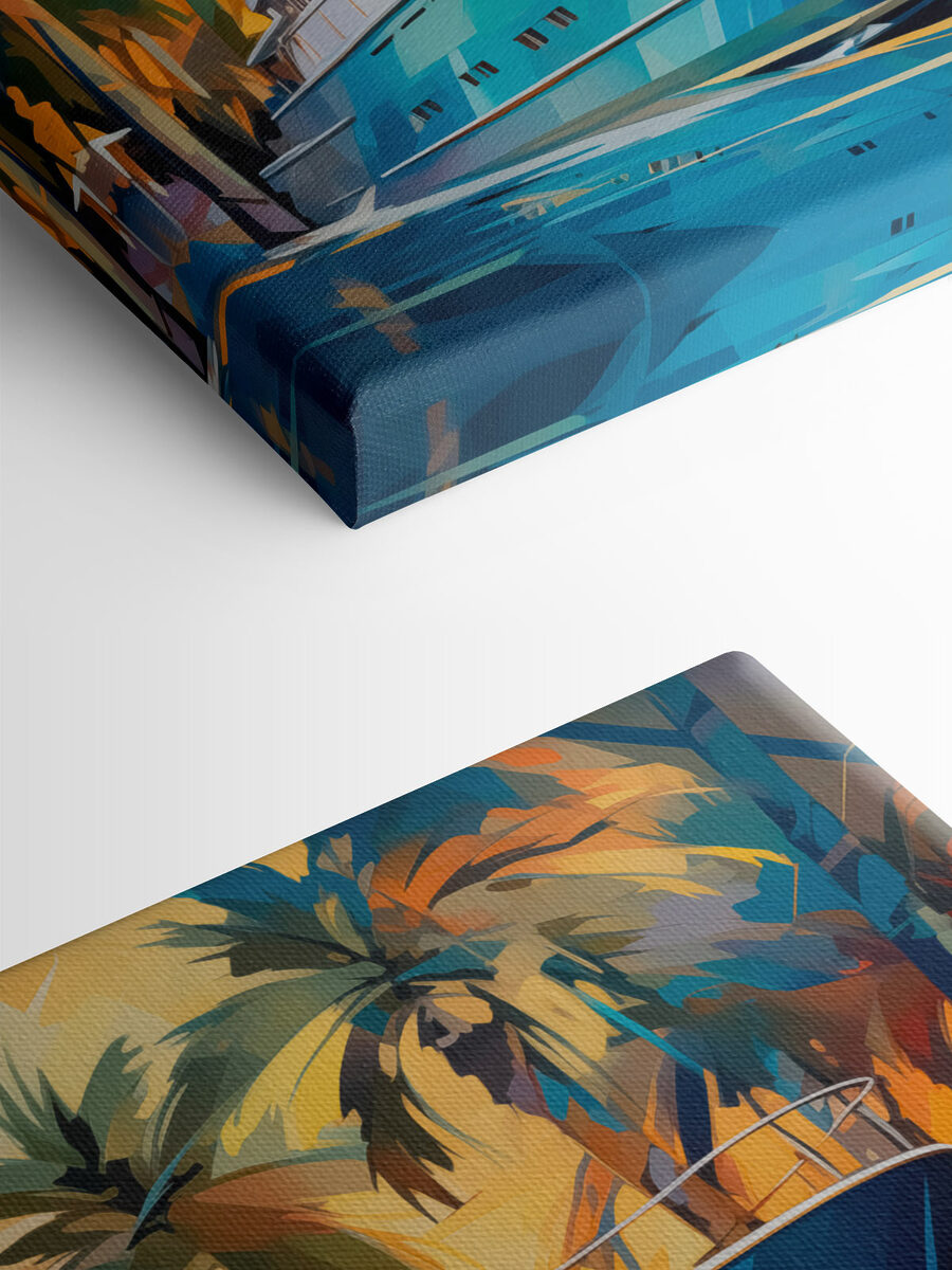 Transformez n’importe quel mur en un coin de paradis grâce à cette vibrante impression sur toile. Imaginez un magnifique bateau bleu glissant sur des eaux tranquilles, entouré de palmiers luxuriants qui murmurent de douces paroles sur la vie insulaire. C’est comme des mini-vacances dans votre salon, vous rappelant les journées ensoleillées et les brises salées. Vos amis ne manqueront pas de s’arrêter et de vous dévisager, voire de vous demander si vous ne leur avez pas caché un voyage secret à la plage. Parfait pour une ambiance de plage ou pour s’évader un peu de la réalité – qui n’en a pas envie ? Plongez dans une décoration qui fait des étincelles !