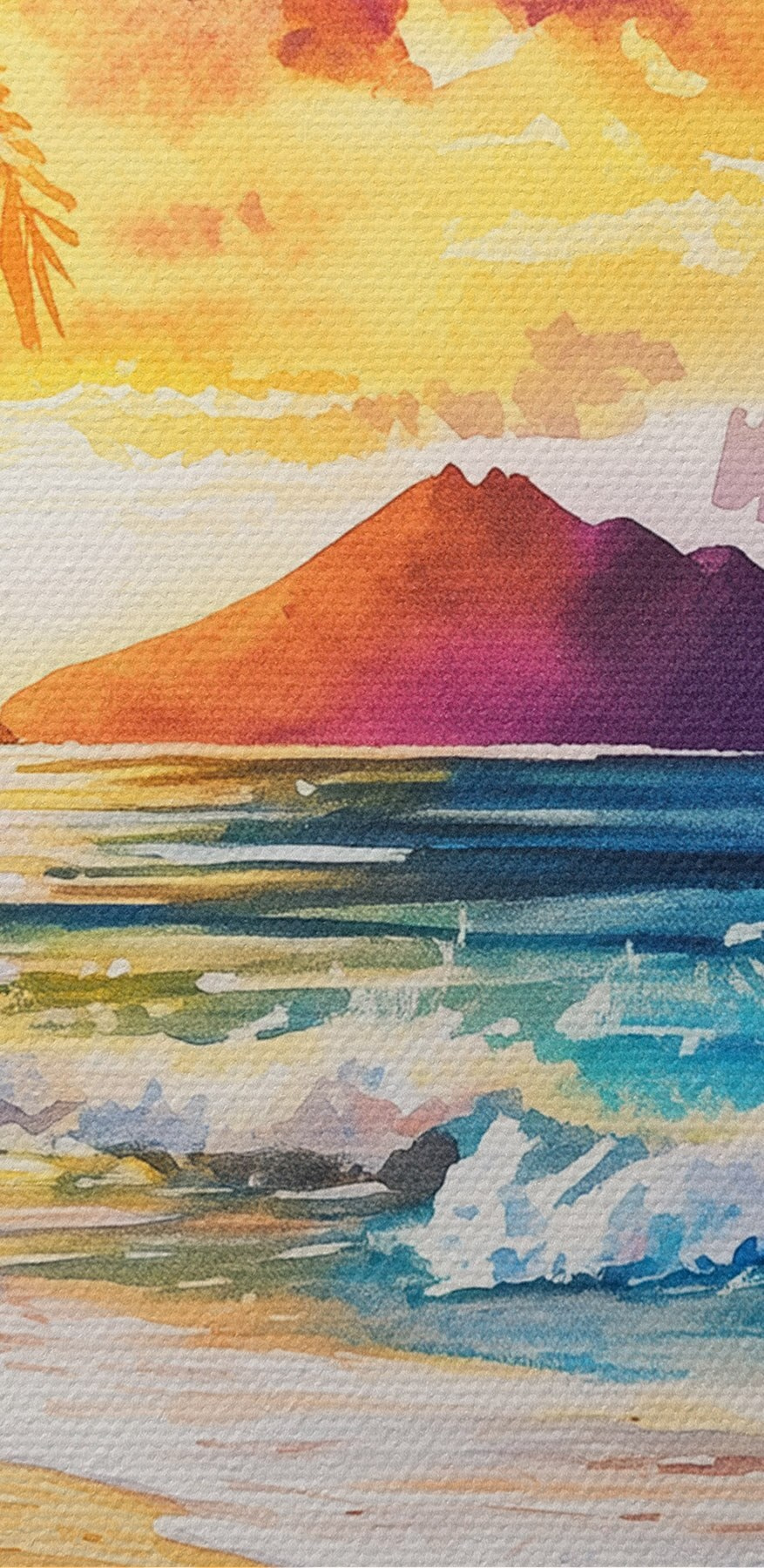 Apportez une part de paradis dans n’importe quelle pièce avec cette aquarelle vibrante d’une scène de plage, avec des palmiers se balançant doucement et des vagues embrassant le rivage. Imaginez-vous en train de siroter une boisson fraîche alors que le soleil se couche dans ces couleurs chaudes, faisant fondre le stress. Parfait pour égayer un salon ou ajouter une touche tropicale à un coin douillet, ce tableau donne l’impression de passer de mini-vacances à la maison. Chaque coup d’œil vous rappellera les après-midi de farniente et les escapades ensoleillées – qui n’a pas besoin d’un peu plus de soleil ? Faites en sorte que chaque jour ressemble à un jour de plage !