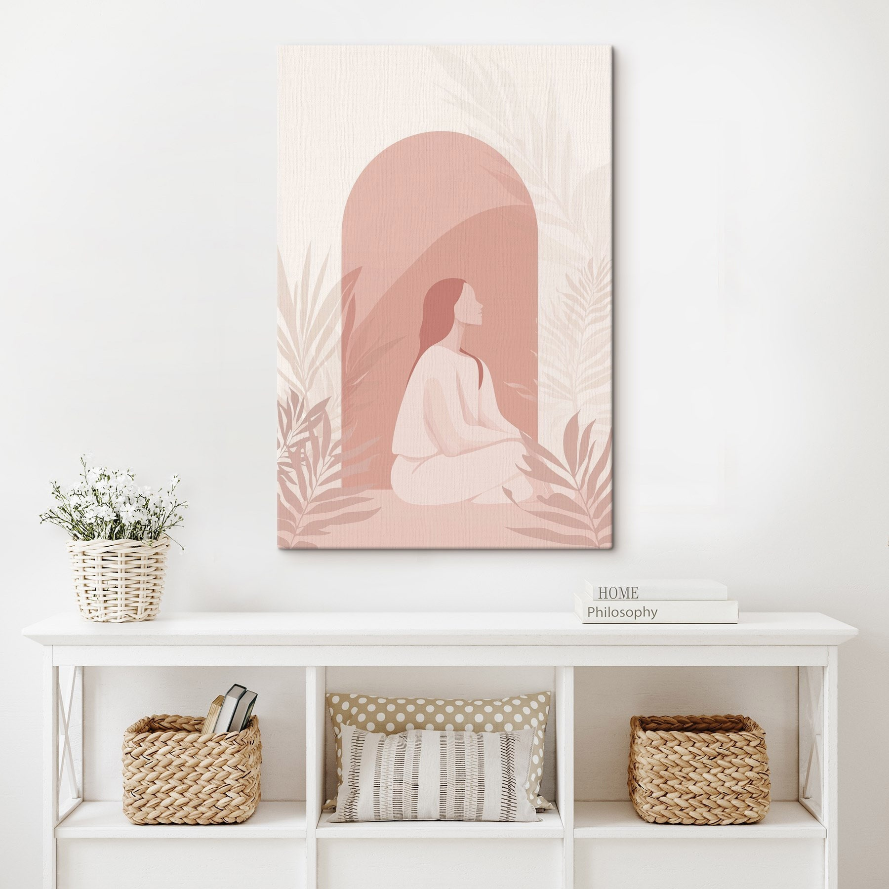 Respirez la tranquillité avec cette magnifique impression sur toile représentant une femme sereine dans un peignoir blanc douillet, parfaitement capturée dans des tons doux et apaisants. Imaginez cette pièce dans un coin de votre salon ou dans un coin confortable où vous sirotez votre café du matin – elle ajoute une touche de paix qui transforme n’importe quel espace. Le feuillage se balance doucement autour d’elle, invitant un murmure de la nature. C’est comme un câlin encourageant sur votre mur, vous rappelant de ralentir et de profiter du moment présent. Parfait pour tous ceux qui cherchent à concilier style et sérénité dans leur maison !
