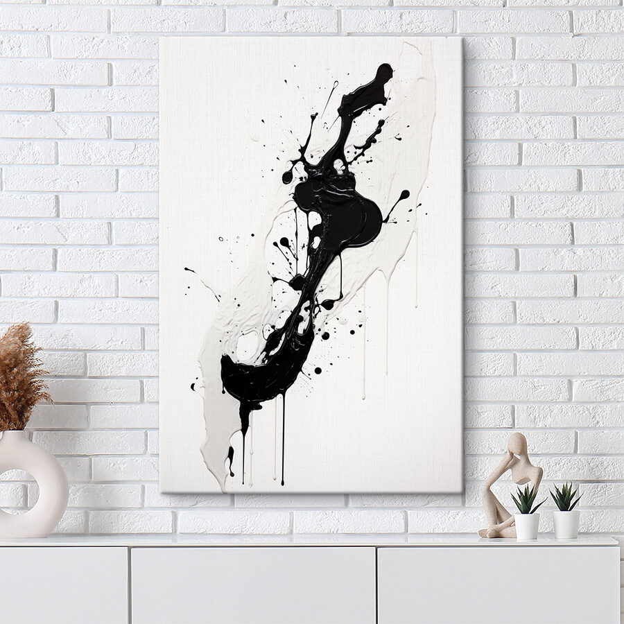 Cette œuvre d’art n’est pas une simple toile ; c’est une danse ludique de noir et de blanc, éclaboussant une surface nette. Imaginez que vous entriez dans une pièce où cette œuvre vous accueille avec des éclats de créativité et de spontanéité. C’est comme si l’artiste avait lancé un seau de peinture avec un clin d’œil et avait dit : “Amusons-nous !”. Cette œuvre est parfaite pour les adeptes du minimalisme ou les personnes à la recherche d’une pièce d’apparat. Il invite à la conversation – tout le monde aura certainement sa propre interprétation. Qu’il suscite l’inspiration ou qu’il vous fasse simplement sourire, il apporte une énergie rafraîchissante dans n’importe quel espace. Un peu de chaos peut être une façon délicieuse de rompre la monotonie, ne pensez-vous pas ?