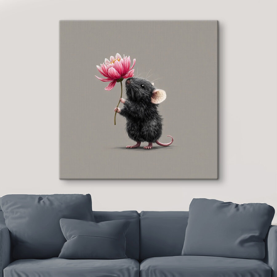Voici la charmante impression sur toile représentant une souris ravissante qui s’accroche à une fleur vibrante. Cette pièce originale ajoute instantanément une touche de fantaisie à n’importe quel espace. Qu’il s’agisse d’apporter un sourire dans un coin douillet ou d’égayer la chambre d’un enfant, son design ludique suscite la joie. Imaginez que vous soyez assis dans votre salon et que vous regardiez ce petit bonhomme qui tient sa fleur comme un fier bouquet. C’est un joyeux rappel que la beauté peut venir des endroits les plus inattendus. Parfait pour les amoureux des animaux ou pour tous ceux qui recherchent une touche de décoration unique. C’est plus que de l’art, c’est un sujet de conversation !
