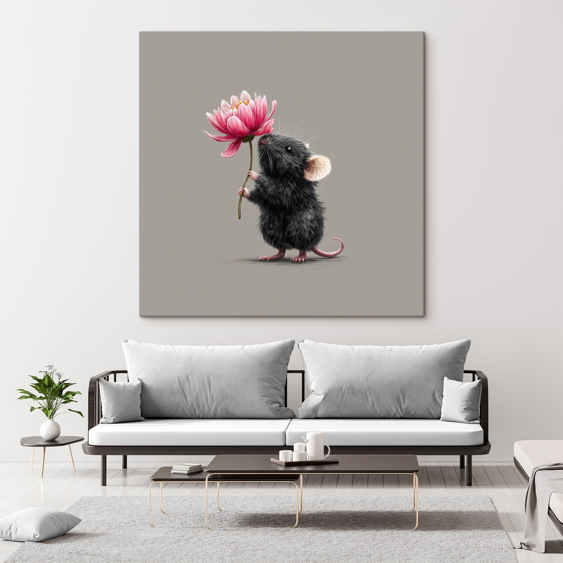 Voici la charmante impression sur toile représentant une souris ravissante qui s’accroche à une fleur vibrante. Cette pièce originale ajoute instantanément une touche de fantaisie à n’importe quel espace. Qu’il s’agisse d’apporter un sourire dans un coin douillet ou d’égayer la chambre d’un enfant, son design ludique suscite la joie. Imaginez que vous soyez assis dans votre salon et que vous regardiez ce petit bonhomme qui tient sa fleur comme un fier bouquet. C’est un joyeux rappel que la beauté peut venir des endroits les plus inattendus. Parfait pour les amoureux des animaux ou pour tous ceux qui recherchent une touche de décoration unique. C’est plus que de l’art, c’est un sujet de conversation !