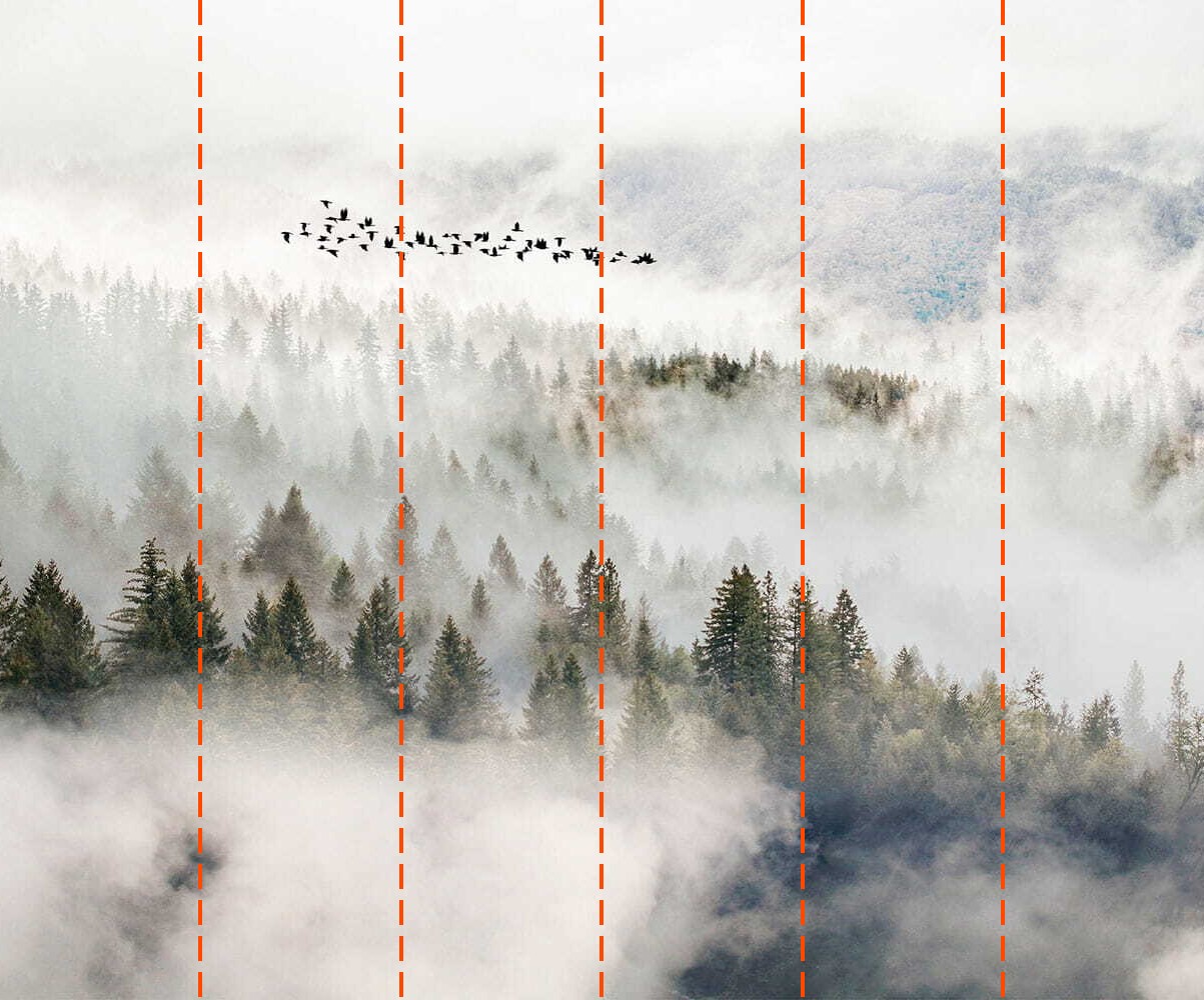 Votre papier peint sera préparé selon les dimensions que vous avez indiquées lors du processus de commande. La toile sera divisée en sections pratiques, chacune d’une largeur maximale de 50 cm.