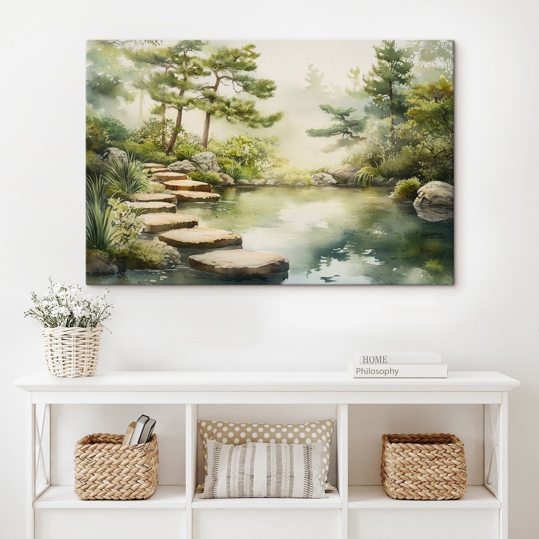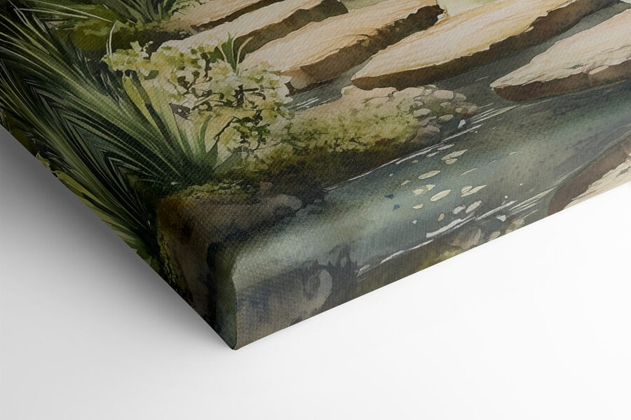 Transformez n’importe quel espace avec cette captivante impression sur toile représentant un étang serein et un charmant sentier. Imaginez que vous entrez dans cette scène paisible tous les jours, comme si les murmures de la nature vous incitaient doucement à prendre une pause. L’invitation calme de l’eau peut inspirer des rêveries ou des moments de tranquillité bien mérités. Parfait pour un coin lecture confortable ou au-dessus d’un espace de travail apaisant, il ajoute une touche de détente. C’est comme si vous apportiez un morceau de jardin japonais zen dans votre maison – qui n’aurait pas besoin d’un peu plus de paix ?