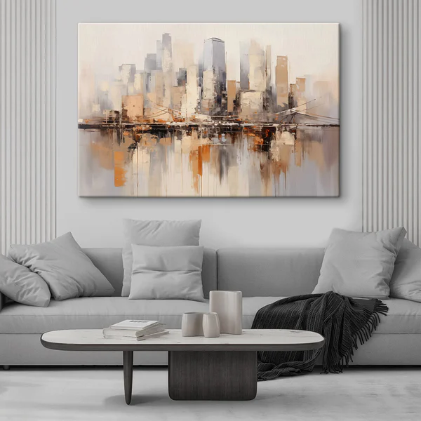 Tableaux Peinture d’une ville et d’une étendue d’eau